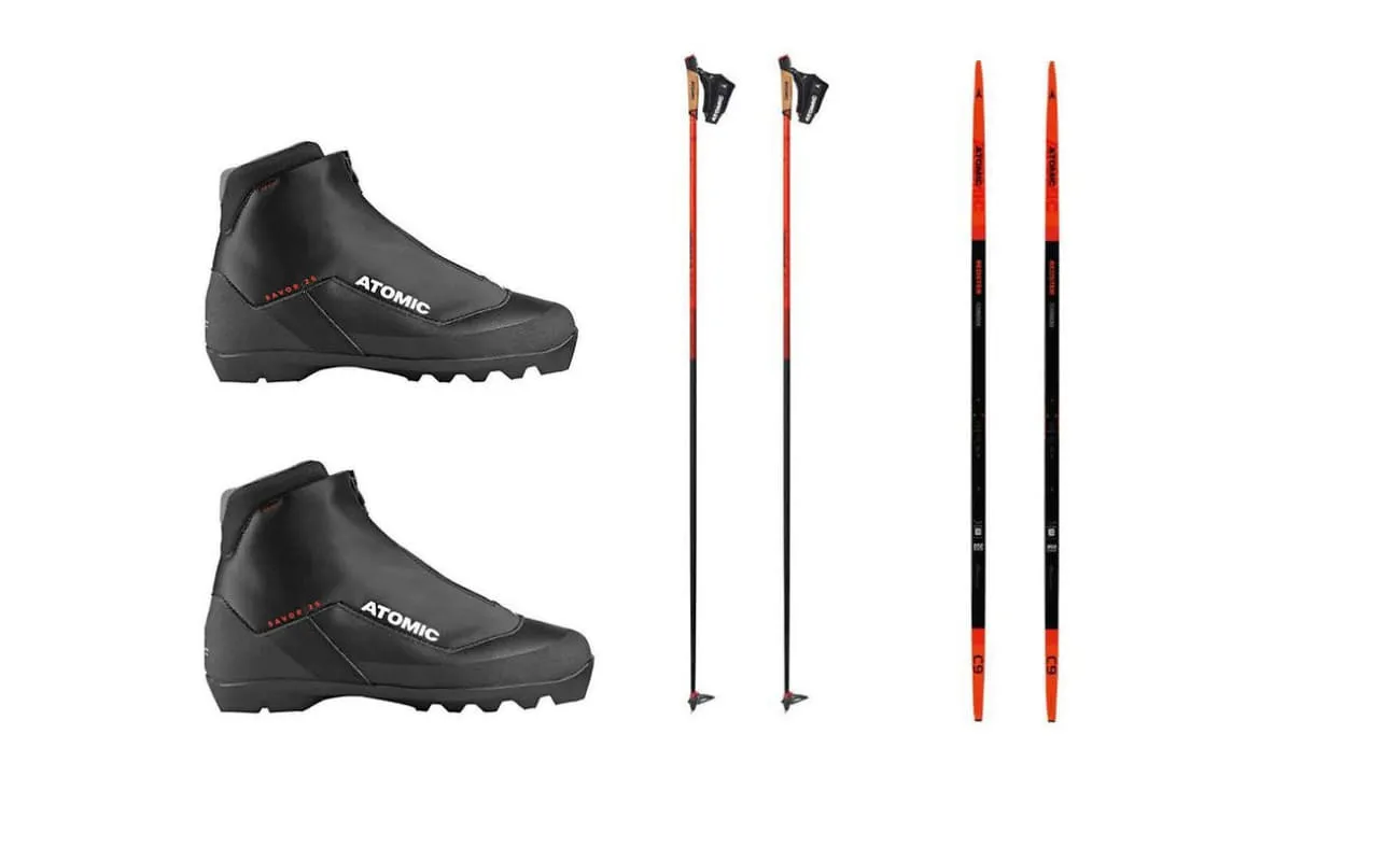 Das Set beinhaltet Langlaufski, Langlaufschuhe und Langlaufstöcke.